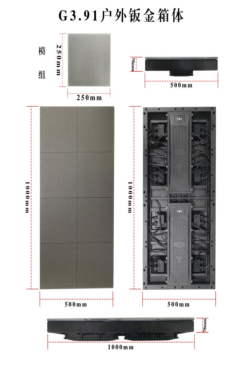 | スクリーンの厚さ | モジュール+キャビネット:80mm、スクリーン+フロアサポート:150∽170mm調整可能 | |